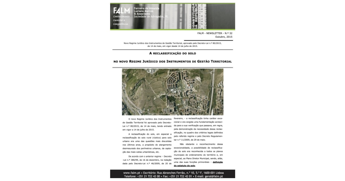 A reclassificação do solo no novo regime jurídico dos instrumentos de gestão territorial.