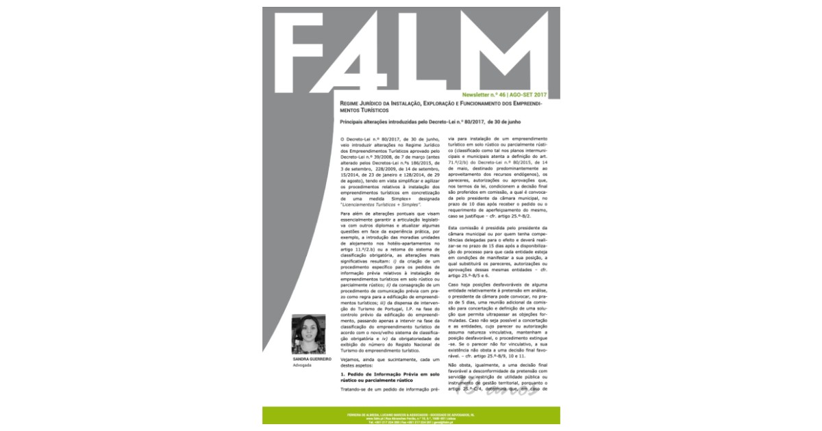 Regime Jurídico da Instalação, Exploração e Funcionamento dos Empreendimentos Turísticos - Principais alterações introduzidas pelo Decreto-Lei n.º 80/2017, de 30 de junho.