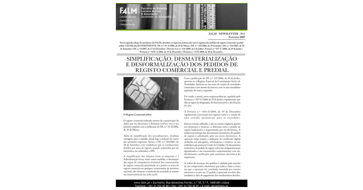 Simplificação, desmaterialização e desformalização dos pedidos de registo comercial e predial.