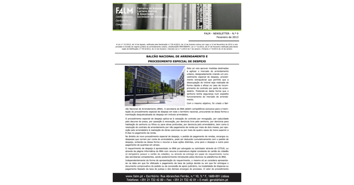 Balcão Nacional de Arrendamento e Procedimento Especial de Despejo.