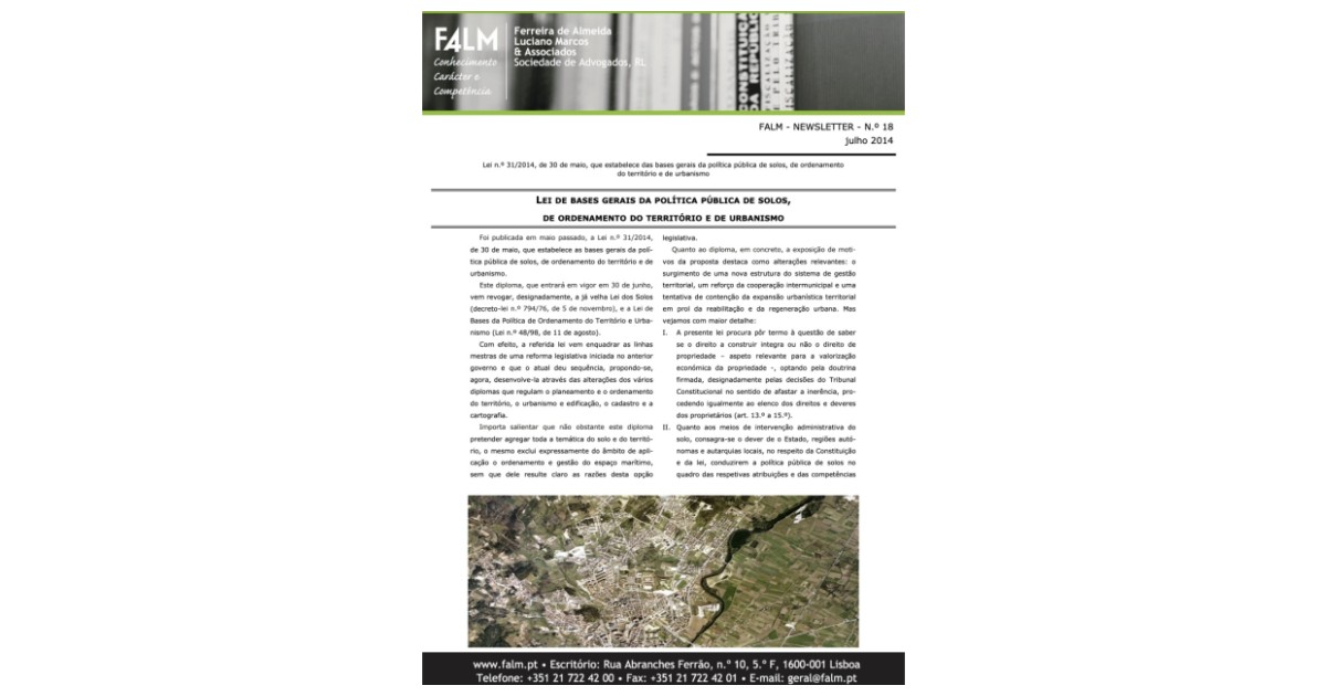 Lei n.º 31/2014, de 30 de maio, que estabelece das bases gerais da política pública de solos, de ordenamento do território e de urbanismo.
