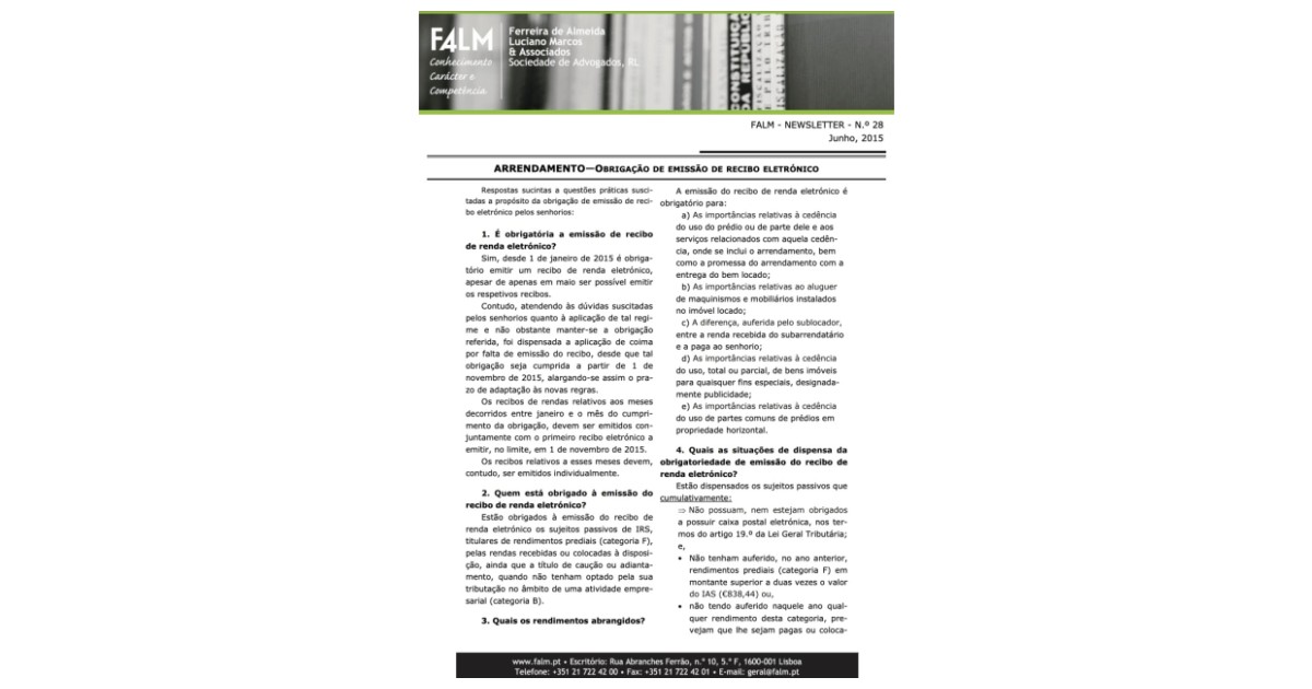 Arrendamento — Obrigação de emissão de recibo eletrónico.