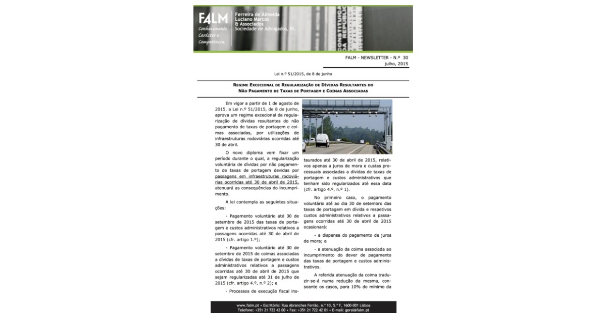 Regime excecional de regularização de dívidas resultantes do pagamento de taxas de portagem e coimas associadas.