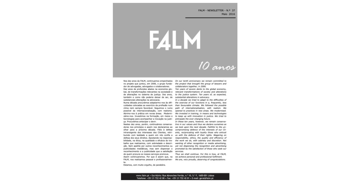 Once again, FALM and FALM lawyers have been recognised by Chambers and Partners in the area of Planning. Luciano Marcos, José Mário Ferreira de A...