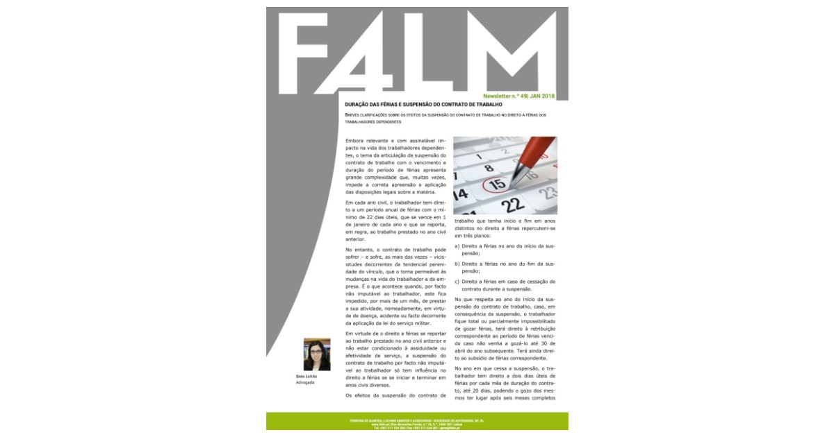 Duração das férias e suspensão do contrato de trabalho - Breves clarificações sobre os efeitos da suspensão do contrato de trabalho no direito a férias dos trabalhadores dependentes.