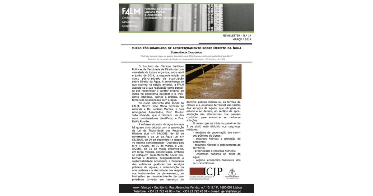 Curso Pós-Graduado de aperfeiçoamento sobre Direito da Água.